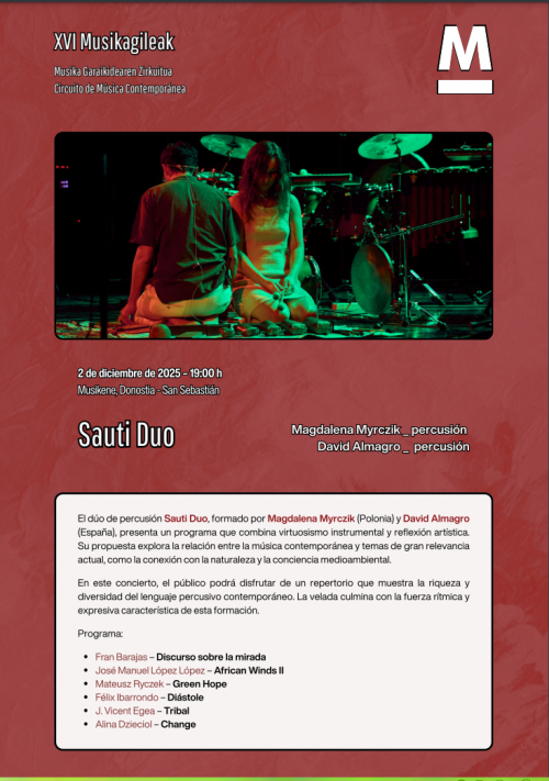 Sauti Duo, Magdalena Myrczik, percusión, david Almagro, percusión